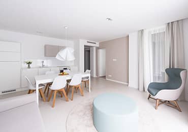 Deluxe apartmanjaink enteriőrjét a "white concept" stílusjegyeiben alakítottuk ki, mely igazi luxus környezetet biztosít az itt töltött idő során.
